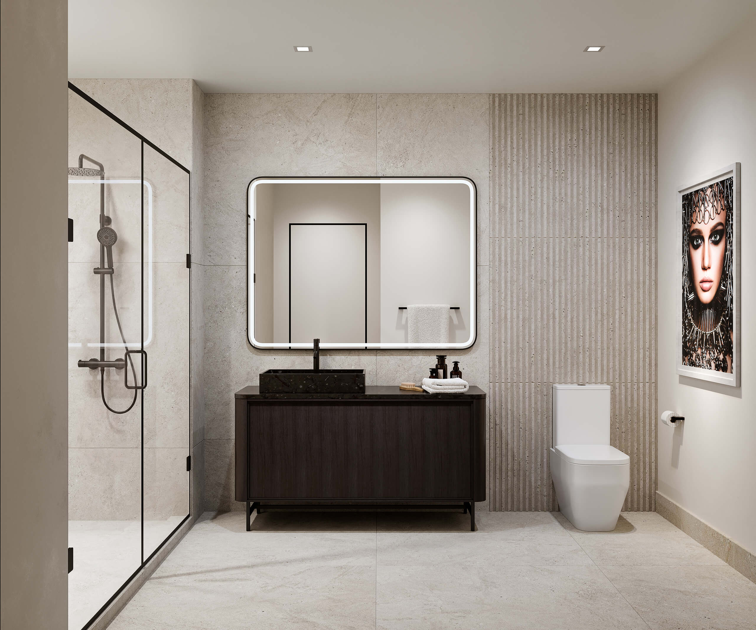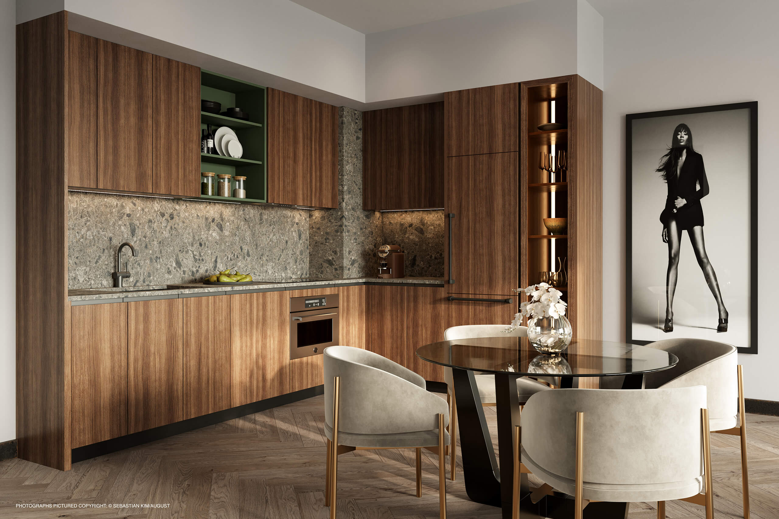 Every residence is designed with intention, featuring Italkraft kitchens, Bertazzoni appliances, Cosentino Dekton surfaces, and refined Porcelanosa finishes that set a clean, modern tone throughout.
